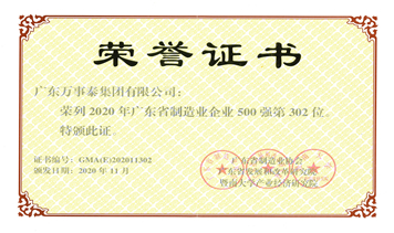 「喜訊」萬(wàn)事泰集團(tuán)榮列2020年廣東省制造業(yè)企業(yè)500強(qiáng)推薦