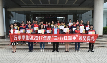 集團訊 芳華三月。29日,廣東萬事泰集團2017年度“三·八紅旗手”頒獎典禮在萬事泰總部一樓舉行,集團工會主席梁洪光應邀出席,以及來自各部門的36名三·八紅旗員工參與了本次活動并合影留念。萬事泰集團每年都會頒給優秀女員工“三·八紅旗手”榮譽稱號,主要表彰在過去一年里,在生產上、管理等方面涌現出的婦女先進人物,對她們的辛勤付出表示衷心的感謝。另外,希望受表彰的女員工們再接再厲、立足本職,勇…