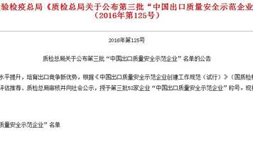 萬事泰集團榮獲“中國出口質量安全示范企業”榮譽推薦