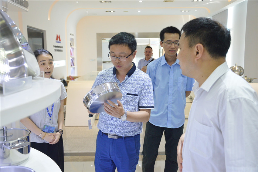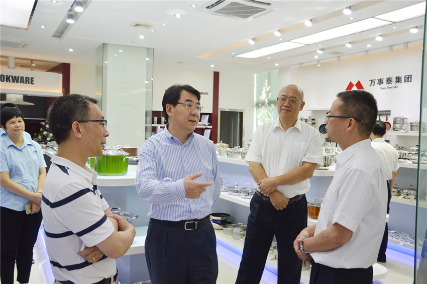 集團(tuán)訊? 2016年5月7日下午3時,縣委常委劉濤、發(fā)改局局陳國泉與貴州麻江縣領(lǐng)導(dǎo)調(diào)研組一行來到萬事泰集團(tuán)調(diào)研,總裁辦梁中興、行政部外事專員蘇瑞萍陪同考察,并向嘉賓介紹集團(tuán)概況、科研創(chuàng)新以及智能制造方面的成績。調(diào)研組一行首先參觀萬事泰智能廚房展廳,了解到萬事泰集團(tuán)的高端不銹鋼餐廚具品牌產(chǎn)品momscook系列,對其產(chǎn)品的一體成型、三層復(fù)底優(yōu)質(zhì)工藝技術(shù),對不粘鍋產(chǎn)品體現(xiàn)的環(huán)保健康、節(jié)能省油…