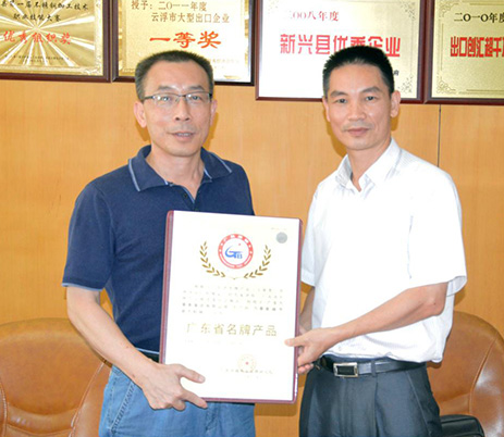 7月31日,新興縣質(zhì)監(jiān)局局長黎華楷等領(lǐng)導(dǎo)來到萬事泰一樓會議室,為萬事泰頒發(fā)“廣東省名牌產(chǎn)品”證書,并與萬事泰常務(wù)副總裁劉炳耀、行政部經(jīng)理陳永錦進行了座談會。座談會,雙方針對創(chuàng)建名牌產(chǎn)品等問題進行了探討。