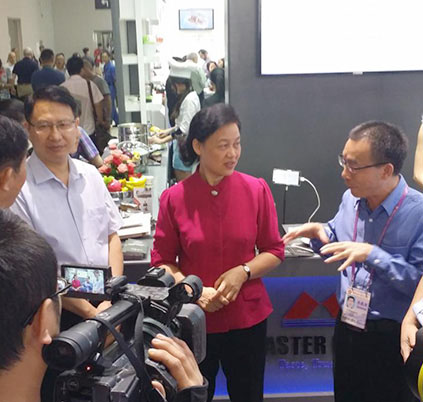 10 月24 日,廣東省副省長招玉芳在廣交會副主任、外貿中心副主任王潤生陪同下視察了第116 屆廣交會,招玉芳一行來到萬事泰集團展位視察,常務副總裁劉炳耀接待了他們。劉副總裁向招副省長匯報企業的轉型升級、創新發展、市場開拓以及在廣交會的成交等情況。招副省長表示,企業只有創新才有生命力,企業應加緊通過品牌建設、技術改造、人才培養等方式,轉型升級,提高核心競爭力。萬事泰集團一直致力于生產出口高端智能廚具,產品遠銷德國,廣受好評。