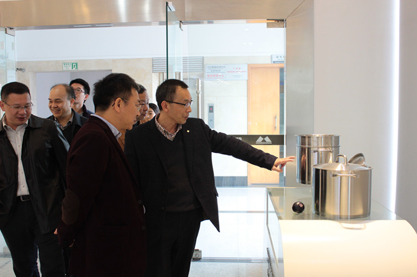 劉煒副廳長(zhǎng)一行先后參觀了萬事泰集團(tuán)總部大樓、技術(shù)中心、生產(chǎn)事業(yè)部、檢測(cè)中心、智能廚房展廳,對(duì)集團(tuán)先進(jìn)的自動(dòng)化生產(chǎn)線,高科技的智能餐廚具產(chǎn)品進(jìn)行深入了解,高度贊揚(yáng)集團(tuán)在“產(chǎn)學(xué)研”以及科技創(chuàng)新領(lǐng)域的實(shí)踐發(fā)展。