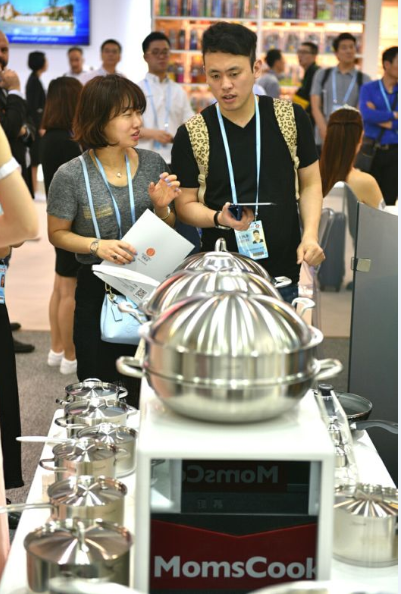 “這個是我們新研發的職能火鍋餐具,可以運用于創業階段做‘無人火鍋’餐廳。有了智能火鍋餐具,消費者不用找服務員,通過app就實現終端連接,食物在后臺配送還可以通過二維碼進行下單、自動回收鍋碗。而這個智能‘砧板’不僅僅可以切菜,還可以一邊聊天一邊看電影聽音樂,看烹飪教程,還可以智能控制右邊的餐鍋火候。” 萬事泰集團產品經理介紹。