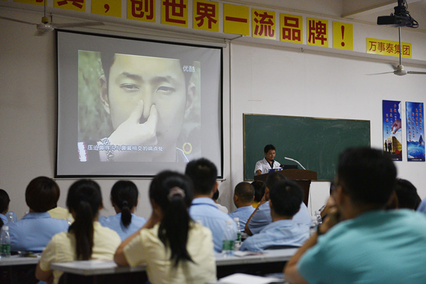 集團訊 2016年8月5日下午15:30,在食堂三樓培訓室由集團行政部舉辦的急救知識培訓班開班。萬事泰各部門、各車間的代表都來參加了培訓。