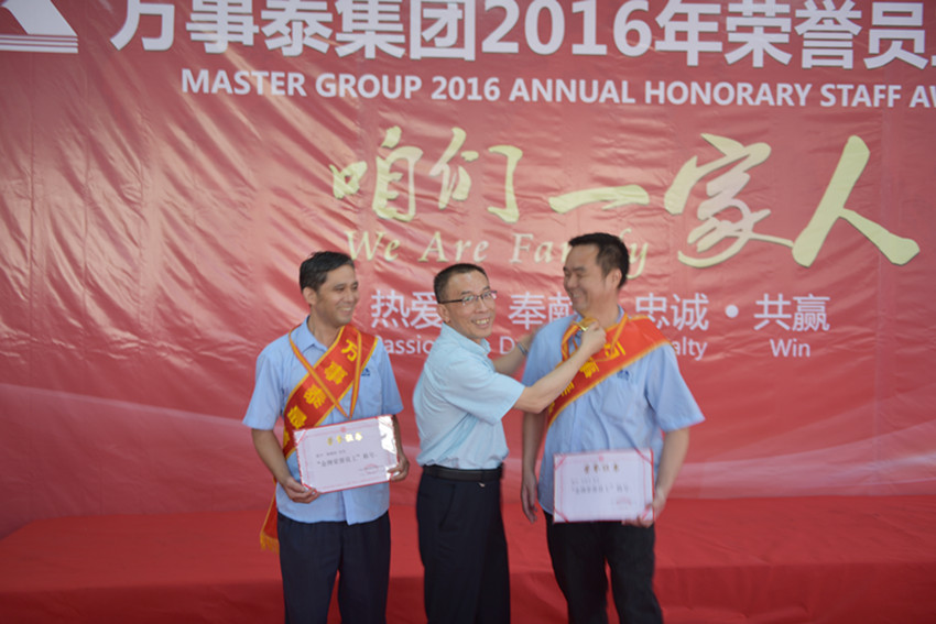 集團訊 2016年8月26日下午4時,為表彰與萬事泰集團風雨兼程、恪盡職守的老員工們的奉獻,傳承、發揚萬事泰“家”文化,集團舉行了主題為“咱們一家人”的2016年度的新晉榮譽員工頒獎典禮和答謝晚宴。