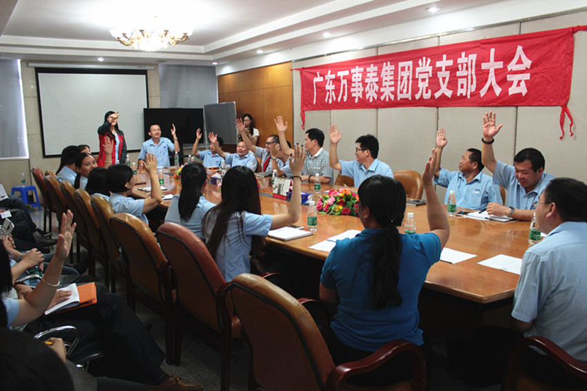 集團訊 10月7日下午5時許,萬事泰黨支部在集團一樓會議室召開廣東萬事泰集團黨支部大會,集團全體黨員參加了會議。會議由黨支部書記陳永錦和黨支部副書記、工會主席梁洪光共同主持。