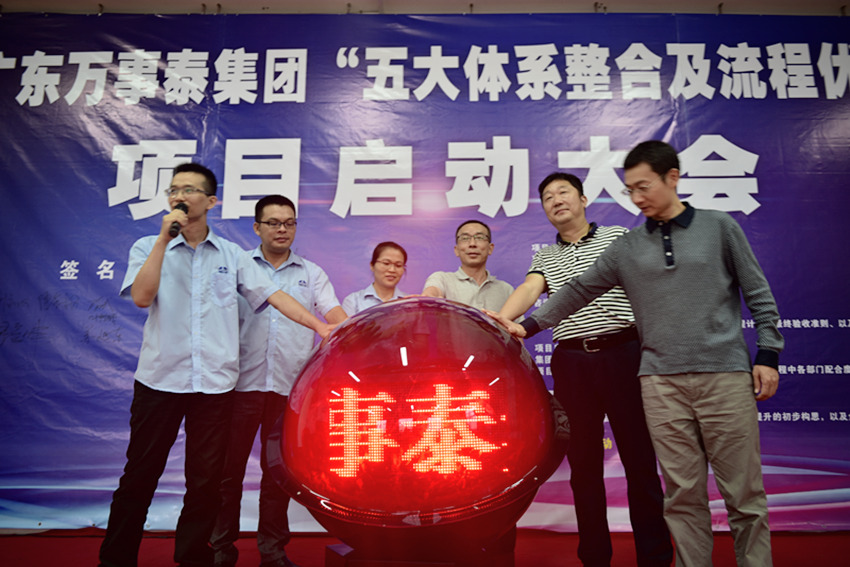 集團(tuán)訊 2016年10月19日,廣東萬(wàn)事泰集團(tuán)召開(kāi)了“五大體系整合及流程優(yōu)化項(xiàng)目”啟動(dòng)大會(huì)。集團(tuán)常務(wù)副總裁、項(xiàng)目領(lǐng)導(dǎo)小組組長(zhǎng)劉炳耀,天儀顧問(wèn)總經(jīng)理、項(xiàng)目咨詢組長(zhǎng)陳巖松,項(xiàng)目領(lǐng)導(dǎo)小組副組長(zhǎng)、體系辦主任葉樹(shù)娥,事業(yè)部總經(jīng)理、生產(chǎn)管理板塊負(fù)責(zé)人鐘木營(yíng)及體系管理組織各機(jī)構(gòu)板塊負(fù)責(zé)人、中層以上集團(tuán)領(lǐng)導(dǎo)參加了大會(huì)。會(huì)議由項(xiàng)目領(lǐng)導(dǎo)小組副組長(zhǎng)梁中興主持。