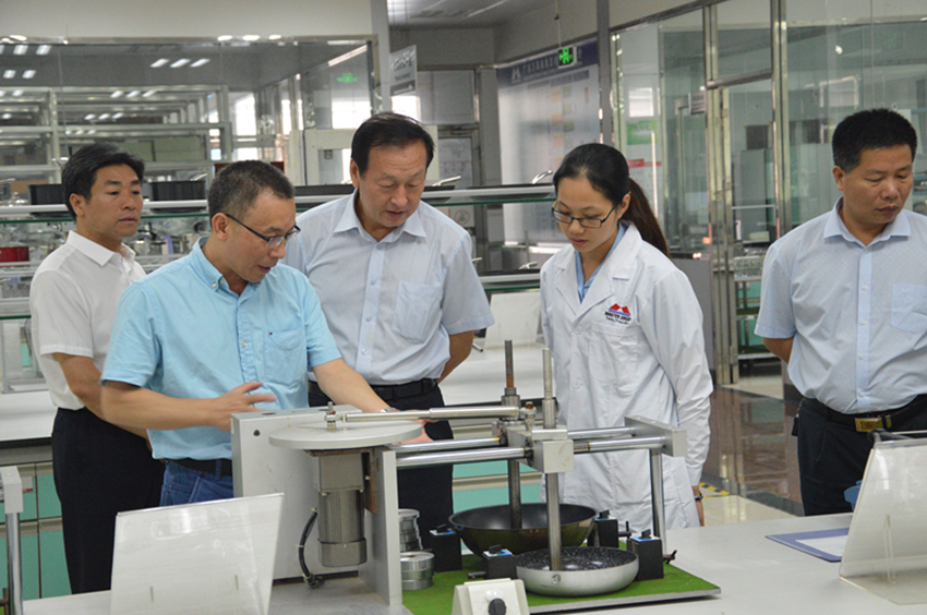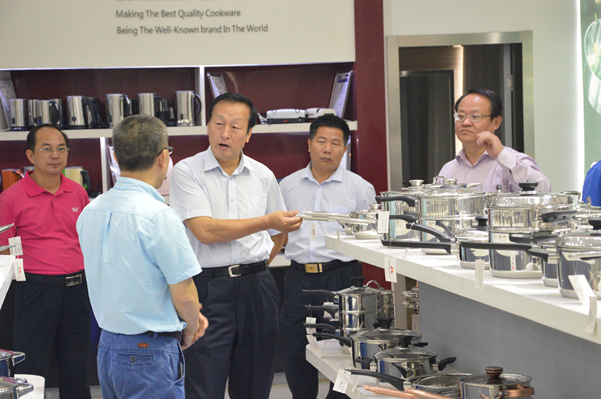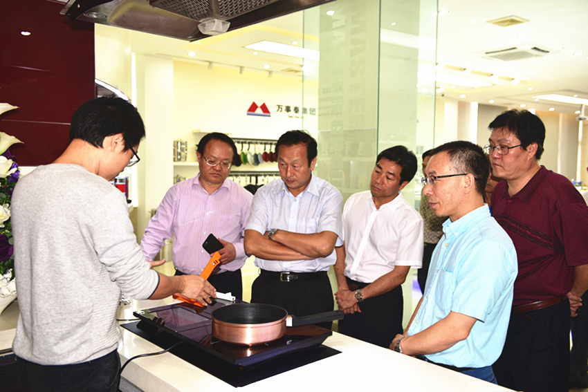 市、縣領導一行來到了萬事泰集團檢測中心,詳細了解產品需要經過多道嚴苛的檢驗檢測,為用戶的食品烹飪質量安全把關。隨后市、縣領導參觀了萬事泰裝配生產車間以及展示廳,集團常務副總裁劉總向市、縣領導介紹了萬事泰自主研發的智能整體廚房、小家電類明星產品以及榮獲德國紅點獎的簡潔微壓鍋,同時也介紹了智能整體廚房、傳感器和智能技術應用領域對不銹鋼餐廚具行業轉型升級產生的創新意義。