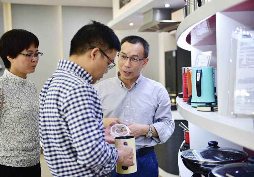 萬事泰集團常務副總裁劉炳耀為來賓介紹集團的小家電產品。