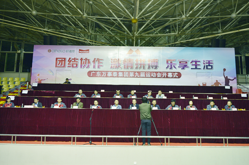 集團訊 2016年12月3日晚上7時30分,廣東萬事泰集團第九屆員工運動會在新興縣體育中心籃球館內隆重開幕。集團常務副總裁劉炳耀、集團工會主席梁洪光、萬富投資公司總經理梁炎泉、新興縣體育局局長梁紹林、以及集團各部門負責人紛紛出席了這次盛會。