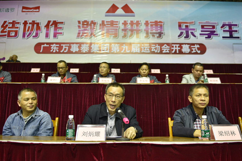 最后,由萬事泰集團常務副總裁劉炳耀進行致辭并宣布廣東萬事泰集團第九屆員工運動會正式開幕:運動會的舉辦意義不但能豐富員工文體生活、增強我們集體凝聚力、向心力,更是體現和進一步加強集團“家”文化建設的重要舉措。希望集團的每一位員工在未來的工作生活中能夠團結協作,守土有責,業績再創新高!