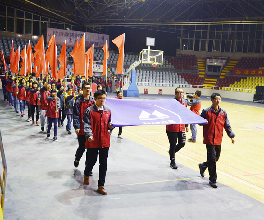 開幕式上,參賽運動健兒們著裝整齊,精神抖擻,在《運動會進行曲》中整裝待發。首先進場的是萬事泰廠旗旗手,四輛馬車并駕齊驅邁著穩健整齊的步伐步入賽場,這四名旗手代表著萬事泰新老血液的傳承。技術中心項目經理陳子一是萬事泰集團多年的老員工,更是技術中心的中流砥柱,為萬事泰付出了青春與汗水。研究所安卓開發工程師羅業強是新生力量,代表著企業的陽光與朝氣。事業一部的運動健兒們也用“奮力拼搏,自強不息”的精神面貌詮釋何謂鋼鐵男兒,何謂巾幗英雄,用洪亮的嗓子喊出“眾志成城,勇創佳績”以表決心;事業二部的健兒們一如既往的發揚吃苦耐勞、勇于進取的精神,用“團結拼搏、勇爭第一”的口號來表述此刻的激情澎湃;事業四部的運動員們也不甘落后,大聲吼出“賽出風采,超越自我”的口號,來表明未來將會向著80萬只玻璃蓋的豪邁目標奮進!