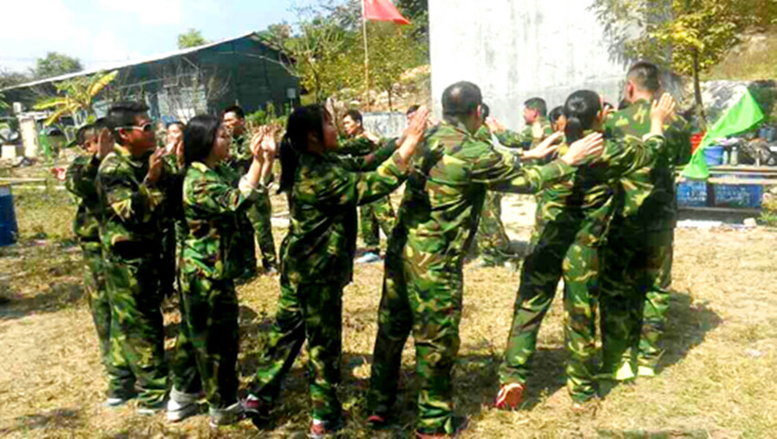 第三個(gè)項(xiàng)目是節(jié)拍同步。在指揮官的哨令下,我們整個(gè)隊(duì)伍圍成一個(gè)圓圈,并開始有節(jié)奏的打節(jié)拍和喊口號(hào):從1開始有節(jié)奏地重復(fù)拍打左右員工肩膊到8,并喊出我們的口號(hào),“我們是最棒的團(tuán)隊(duì)”,一次,兩次…經(jīng)過(guò)多次的配合,口號(hào)聲越來(lái)越整齊、節(jié)拍越快速,最紿達(dá)到了訓(xùn)練的要求。該項(xiàng)目的培訓(xùn)目的是培養(yǎng)員工步調(diào)一致,配合默契的團(tuán)隊(duì)精神。這個(gè)項(xiàng)目看似簡(jiǎn)單易做,其實(shí)是考驗(yàn)我們思想集中,團(tuán)結(jié)一致、步調(diào)一致、作風(fēng)嚴(yán)謹(jǐn)?shù)木駹顟B(tài)