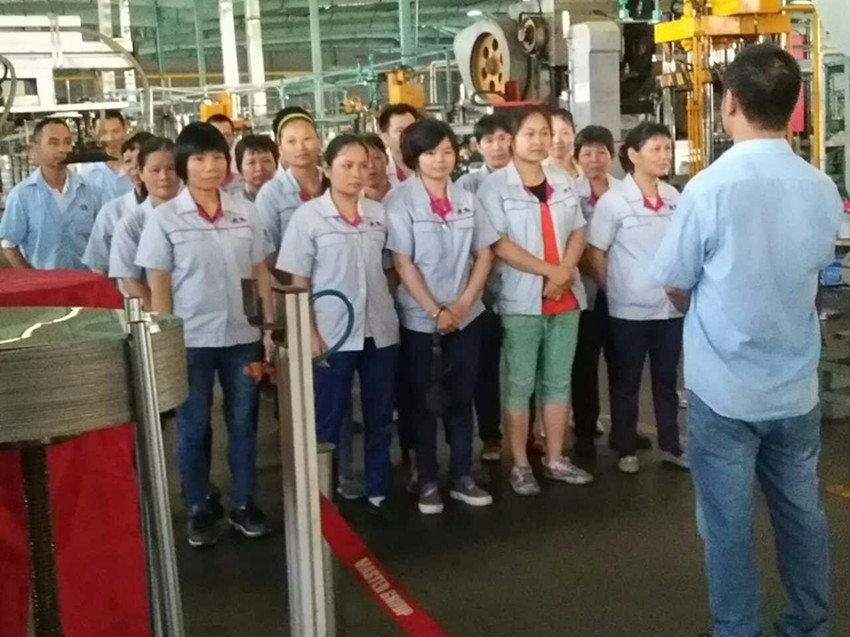 參加改善周工作中有生產巡查組、沖壓復底車間,裝配車間和拋光車間的相關領導。