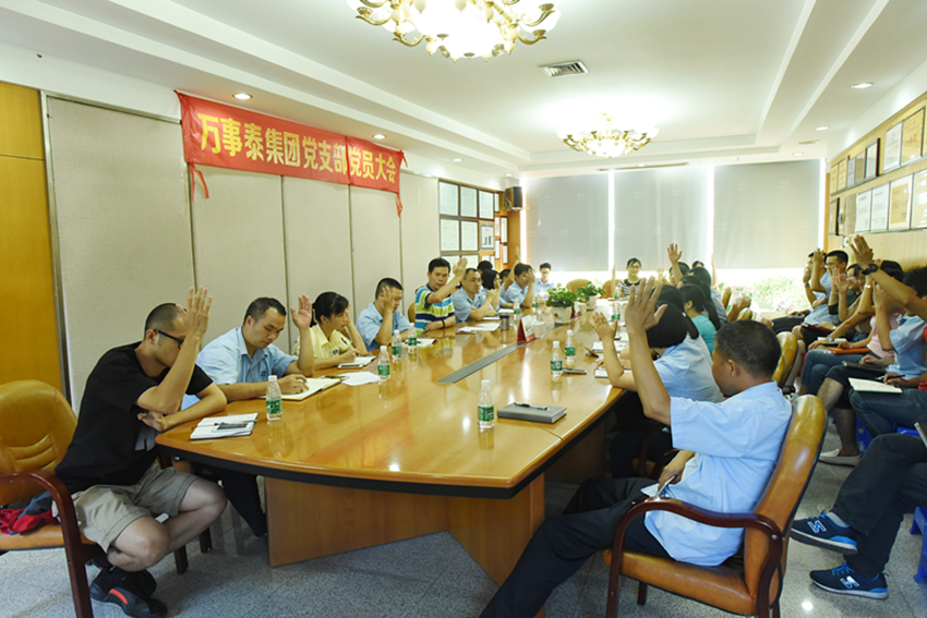 集團訊 6月27日,2017年萬事泰集團黨支部黨員大會在集團一樓大會議室內日常召開,全體黨員出席會議。