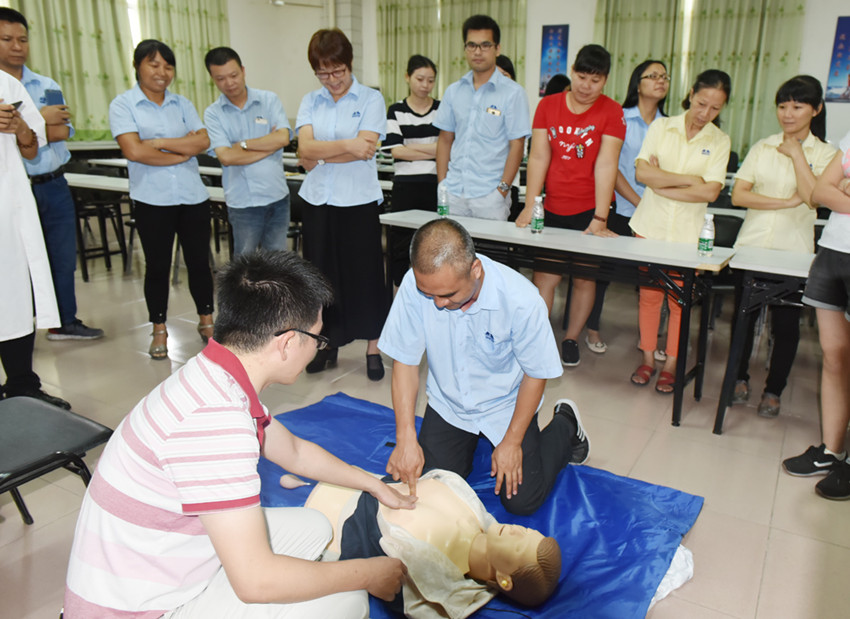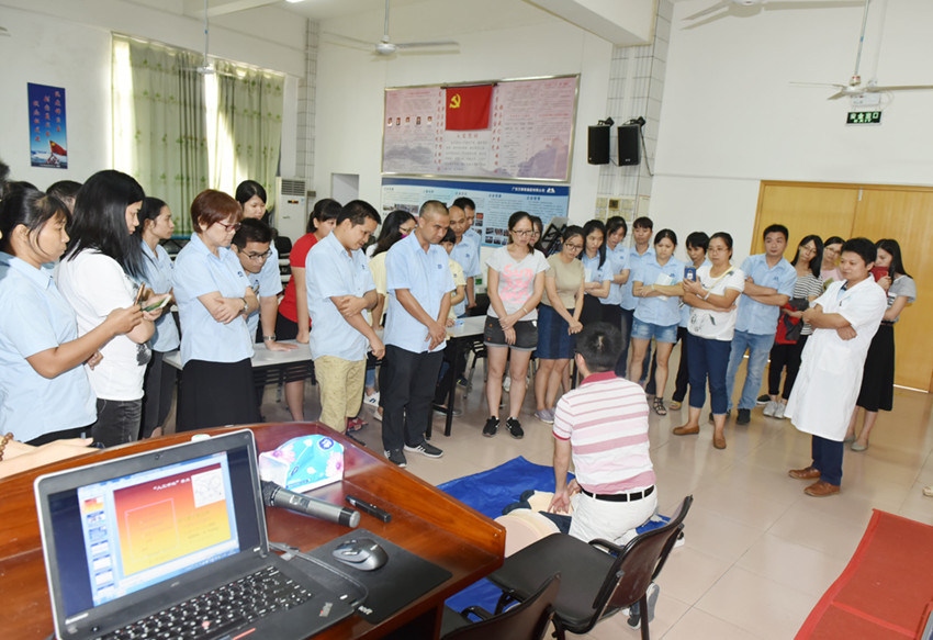 集團訊 9月14日下午,萬事泰集團貫徹“安全第一、預防為主、綜合治理”的健康、安全方針,特聯合新興縣中醫院在總部食堂三樓培訓室開展企業急救培訓班課程,集團各部門代表共50多人參加。