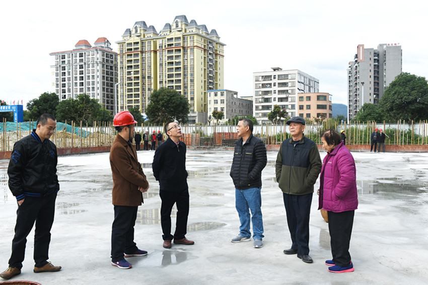 集團(tuán)常務(wù)副總裁劉炳耀(左三)、行政部經(jīng)理陳永錦(左二)現(xiàn)場見證封頂儀式。