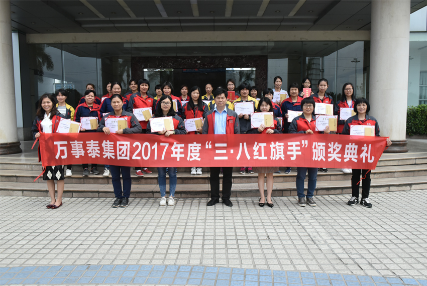 萬事泰集團每年都會頒給優秀女員工“三·八紅旗手”榮譽稱號,主要表彰在過去一年里,在生產上、管理等方面涌現出的婦女先進人物,對她們的辛勤付出表示衷心的感謝。另外,希望受表彰的女員工們再接再厲、立足本職,勇于奉獻,繼續發揚“三·八紅旗手”精神,在各自的工作崗位上再創佳績。同時,號召公司全體員工以“三·八紅旗手”為榜樣,學比趕超,一起為美好未來努力拼搏。