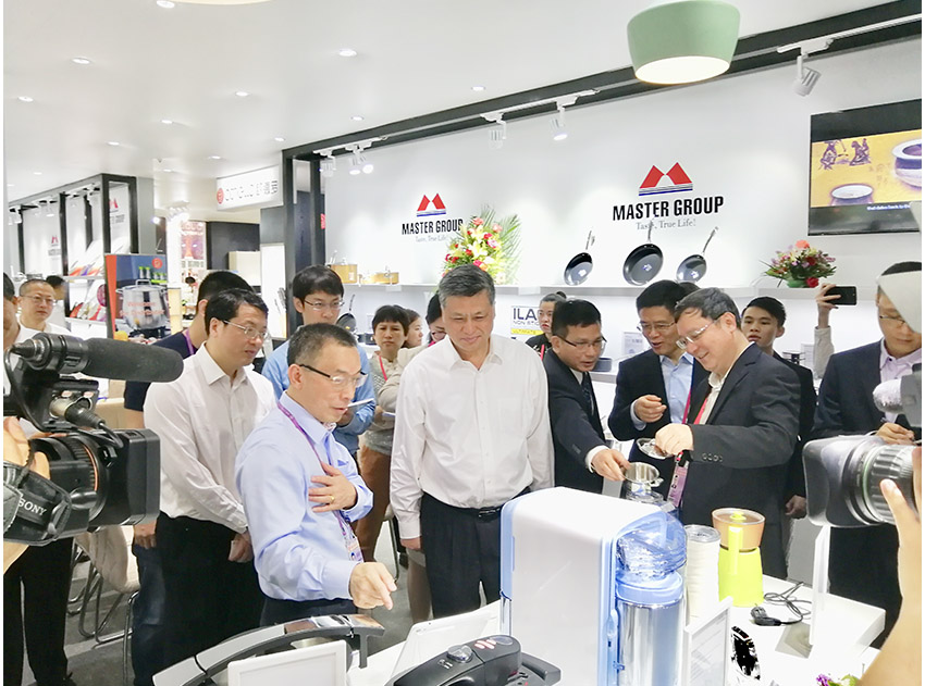 馬省長(zhǎng)一行在梁董、劉總的陪同下,先后參觀了萬(wàn)事泰歐德羅品牌展區(qū)以及國(guó)際業(yè)務(wù)專區(qū),詳細(xì)了解我司參展情況,并關(guān)心詢問(wèn)了我司近年來(lái)的發(fā)展情況和在轉(zhuǎn)型升級(jí)方面的進(jìn)展情況。劉總向馬省長(zhǎng)介紹了萬(wàn)事泰參加本屆廣交會(huì)的最新智能產(chǎn)品:智能壓力鍋、智能沖奶機(jī)、多功能磨刀機(jī),以及萬(wàn)事泰入選2017年阿斯塔納世博會(huì)專用紀(jì)念品——4D超導(dǎo)系列產(chǎn)品等產(chǎn)品,并代表集團(tuán)向馬省長(zhǎng)等領(lǐng)導(dǎo)做了匯報(bào)。