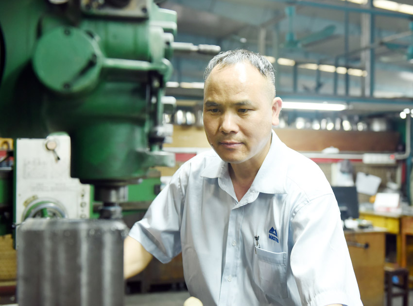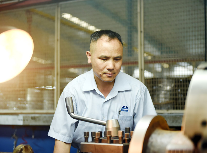 自1996年入行以來,他就一直從事機械類相關工作。對他來說,工作的地方就是他第二個家,有時候為了工作上的事情,他連續工作30天不休息也不覺得累,反而覺得特別有成就感,越做越有沖勁。他印象最深刻的事情是在萬事泰參與開發雙層奶煲產品,杯類產品,蘆筍煲拉伸模改良,把產品從無到有的模具設計制作過程,在整個生產研發過程中,他收獲了很多,也更加堅定選擇不銹鋼行業,加入萬事泰的信念。日復一日打磨,他對不銹鋼制品的生產材料、物料性能,鋼料、材質的加工性能、工藝特點以及測試要求、測試標準都是非常熟悉,能夠做到高質高效完成工作。