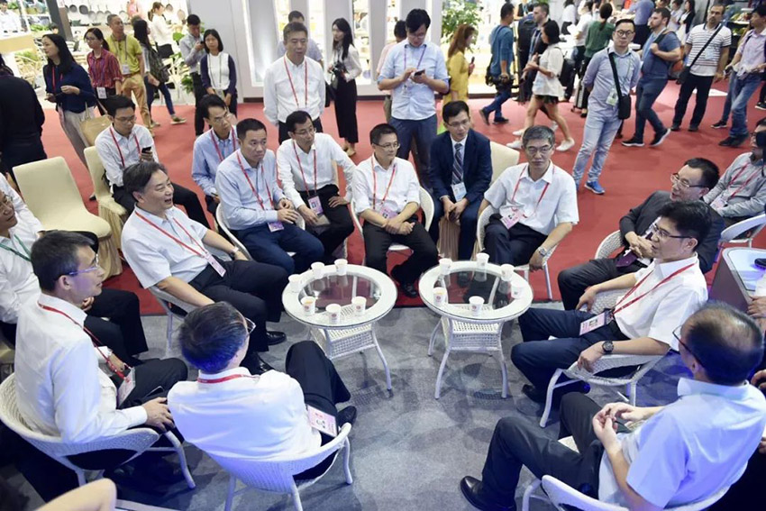 劉總代表新興縣不銹鋼商會與萬事泰集團向調研領導分別作了工作匯報,詳細介紹了企業發展情況、應對中美貿易摩擦的措施和本屆廣交會參展情況。