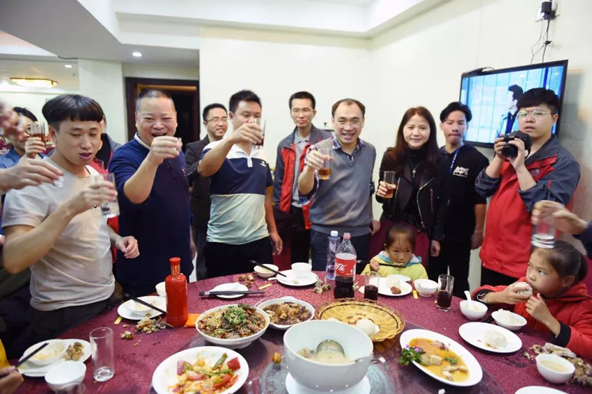 隨后,集團領導與各位員工舉杯共飲,共同祝愿在座各位的父母身體健康、各位的兒女健康成長,同時祝愿各位新的一年工作順利。