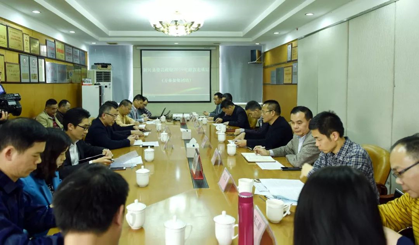 集團訊 2月28日,新興縣委縣政府2019年新春走基層(萬事泰集團站)座談會在集團總部會議室舉行。新興縣縣委書記唐誼,縣長袁伙月率領縣四套班子領導及縣委縣政府相關部門負責人一行到我司座談交流,縣領導梁錦釗、梁國華、陳就慶、譚志春、徐廣志、蘇江毅參加活動。集團董事長梁桂泉、常務副總裁劉炳耀熱情接待并參加了座談會。