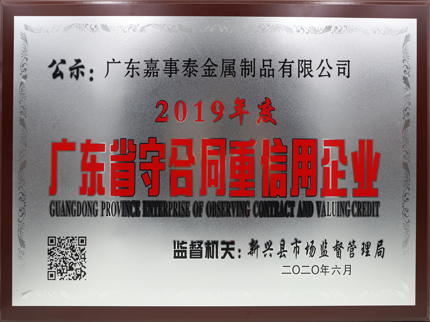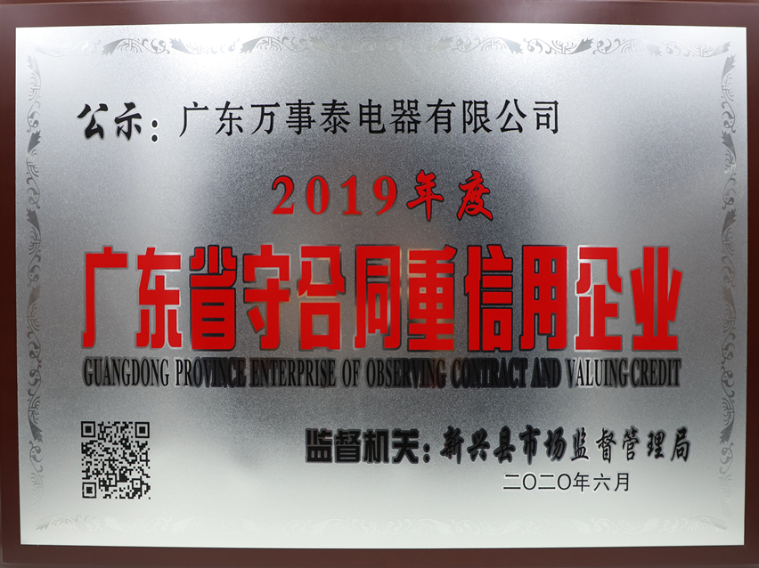 集團(tuán)訊 日前,廣東省市場監(jiān)督管理局公布了2019年度“廣東省守合同重信用”企業(yè)名單,廣東萬事泰集團(tuán)有限公司、集團(tuán)下轄的廣東嘉事泰金屬制品有限公司和廣東萬事泰電器有限公司同時(shí)入選并榮獲2019年度“廣東省守合同重信用企業(yè)”的稱號(hào),且廣東萬事泰集團(tuán)已連續(xù)16年(2004年-2019年)獲此殊榮。
