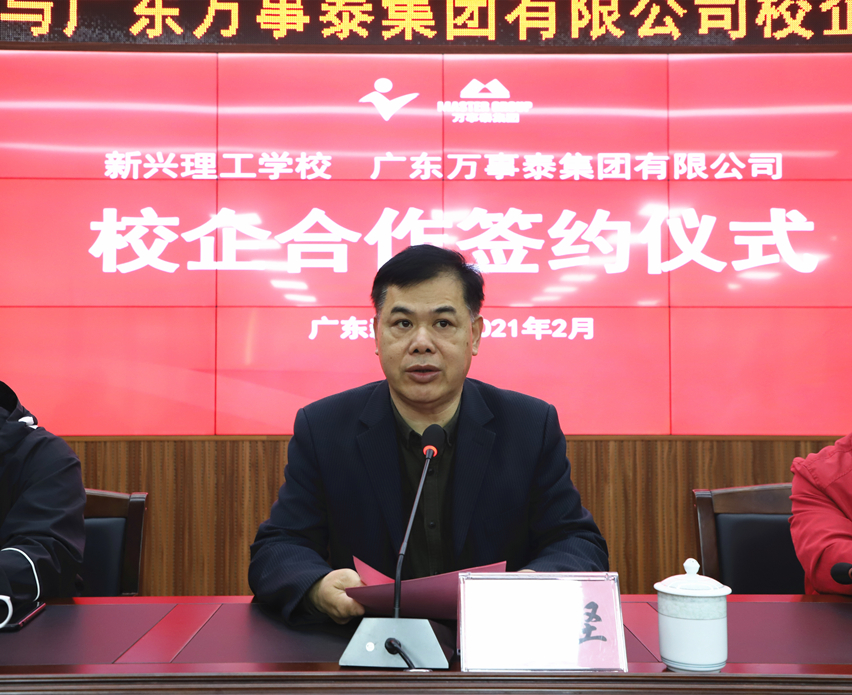 會議伊始,新興理工學(xué)校校長伍松堅(jiān)在講話中指出,近年來,學(xué)校不斷完善產(chǎn)教融合、協(xié)同育人機(jī)制,廣泛開展校企合作,校企只有密切合作,才能服務(wù)企業(yè)、引領(lǐng)行業(yè)。伍校長勉勵(lì)此次參加萬事泰實(shí)習(xí)的學(xué)生要把握這種千載難逢的機(jī)會,虛心向技術(shù)人員請教,不斷提高自己的專業(yè)技術(shù)操作能力。并祝愿此次與萬事泰集團(tuán)在合作中能夠資源共享、優(yōu)勢互補(bǔ)、合作共贏、友誼長存、越辦越強(qiáng)。
