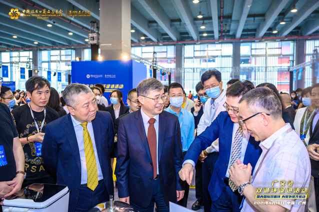 參展期間,中國對外貿易中心主任、廣交會副主任兼秘書長儲士家,廣東省商務廳黨組書記、廳長、自貿辦主任張勁松一行蒞臨萬事泰展位調研指導,劉炳耀總裁陪同調研并重點介紹了萬事泰內銷發展情況以及參展產品設計亮點。儲士家主任一行對萬事泰集團在轉型布局以及產品創新等方面給予了充分肯定,鼓勵萬事泰集團要用好相關政策和平臺,繼續積極拓展內銷渠道、加強產品創新研發、將更多符合國內需求的產品轉向內銷市場,實現企業更健康發展。