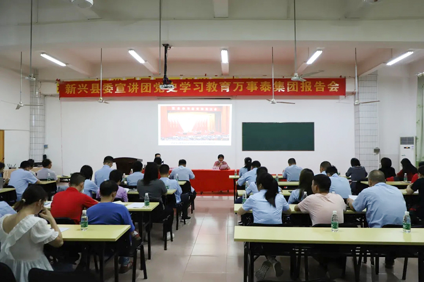 集團訊 為貫徹落實黨史學習教育的部署要求,激勵和動員全體黨員干部職工更加緊密團結,聚力加快探索建設融灣發展先行示范縣。5月15日,集團黨支部特邀縣委宣講團講師余志雄同志蒞臨萬事泰集團宣講黨史學習教育,集團黨支部全體黨員、工會委員、工委委員共50余人參加宣講學習教育活動。