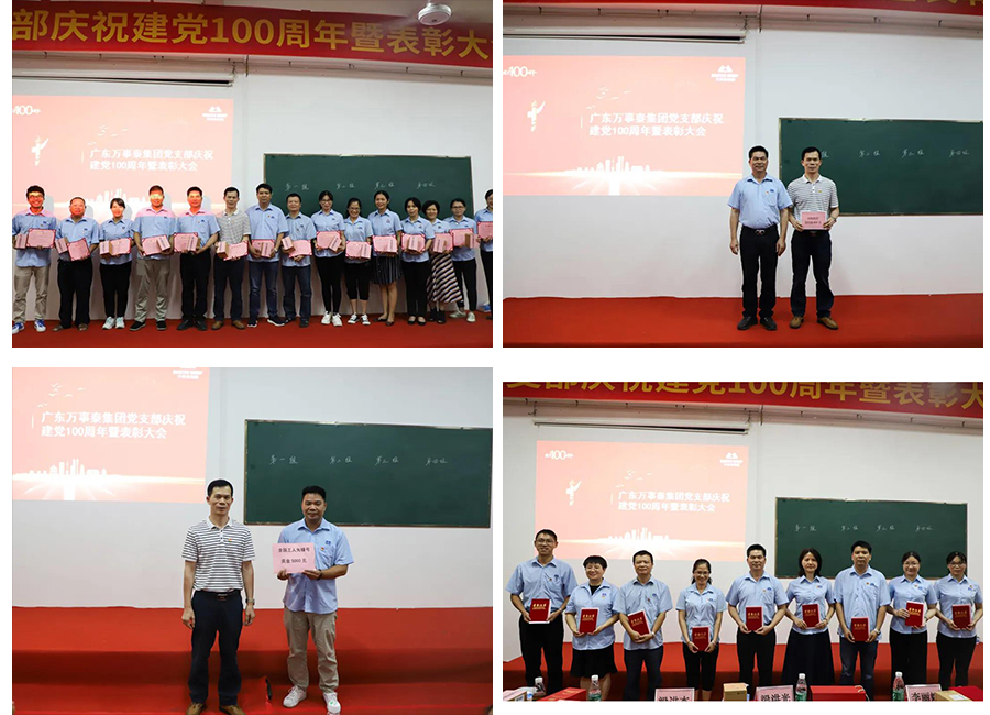 最后,萬事泰集團黨支部書記梁洪光總結強調,回首集團的成長歷程,黨的精神是萬事泰集團發展不斷取得新成績的重要法寶,在中國共產黨百年華誕的喜慶時刻,希望通過表彰先進的方式,樹立標桿,激勵廣大員工學習榜樣,汲取榜樣力量,發揚“比、學、趕、超”的精神,追求進步,創優爭先,在崗位工作中做出新的成績,為實現公司宏偉目標而努力!