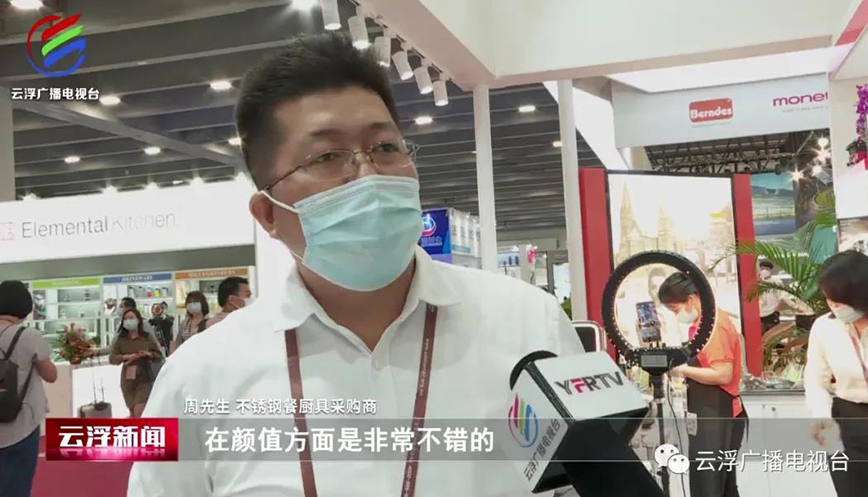 黃志榮:“這是我們最新推出的壓力鍋,它獲得了廣東第130屆進出口產品的設計獎金獎,是云浮市唯一獲得金獎的產品,主要有幾個特點:一是它有六重的安全裝置,第二是它可以節省百分之三十的能源。這次我們總共帶來了200到300款產品,主要以不銹鋼的餐廚具為主,還有鋁制的烘培類的產品和小家電,著力打造一個餐廚用品的一站式采購基地?!?