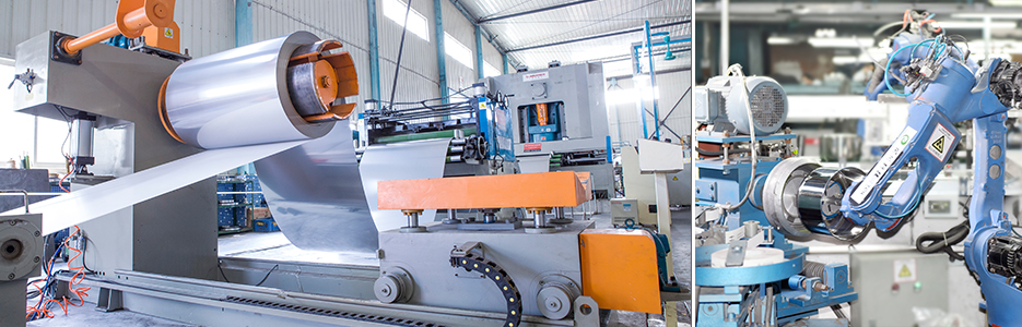 集團擁有先進的大規模生產基地,屬下工廠占地23萬余平方米, 標準廠房面積15萬多平方米,擁有自動/半自動生產線 20 余條、各類先進機械設備達 2000 多臺(套),主要生產設備和質量檢測設備均為進口或采用國內一流設備,關鍵技術從歐洲、日韓等國引進,設備 技術水平居于國內行業領先。集團生產能力位居行業前列,年可生產各種規格的不銹鋼餐廚炊具、鋁制餐廚鍋具達2800萬只、鋼化玻璃蓋1200萬只,小家電200萬只,不銹鋼和鋁制品年加工能力超過36000 噸,年可出口貨值超過 3500 個標準貨柜,能滿足世界各地客 戶大規模的訂單需要。